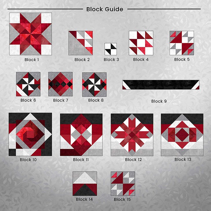Source : www.uncut.co.ukKit Crimson Shadows BOM Quilt Exclusive King Starting March